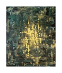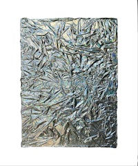 acrylic, textural paste, tin foil and gold leaf on canvas